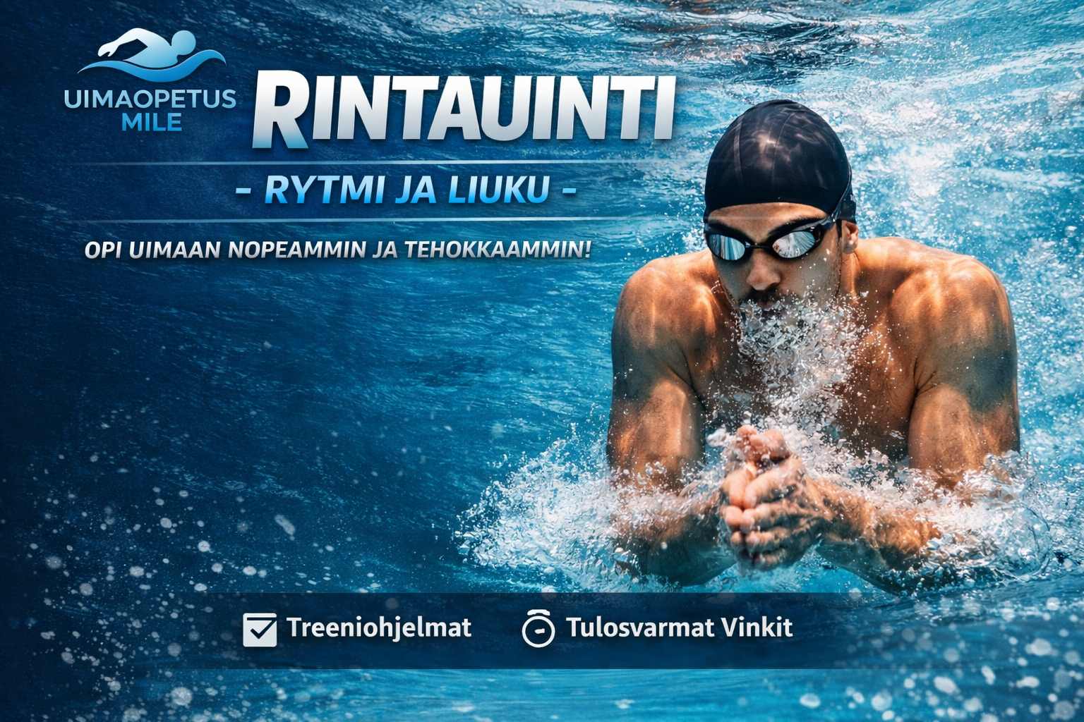 Rintauinnin valmisohjelma tarjoaa sinulle neljän viikon ajaksi harjoitteita millä parannat tekniikkaasi ja symmetriaa rintauinnissa. Tekniikkauinteja on kaksi per viikko. Mikäli harjoitusohjelmasta on kysymyksiä voi ne laittaa uimaopetusmile@protonmail.com